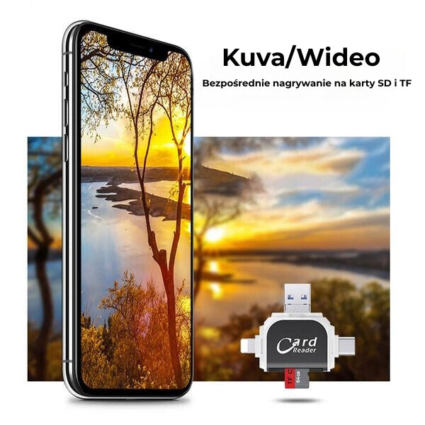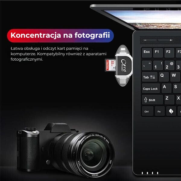 TEN WSZECHSTRONNY CZYTNIK KART JEST PRZEZNACZONY DO RÓŻNYCH TYPÓW KART PAMIĘCI, W TYM KART SD I TF. DZIĘKI CZTEREM RÓŻNYM PORTOM OFERUJE UNIWERSALNĄ KOMPATYBILNOŚĆ I PŁYNNY TRANSFER DANYCH.