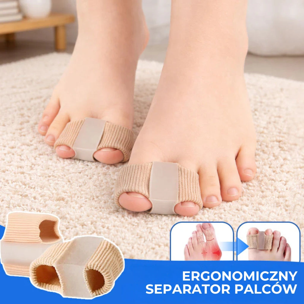 Separator delikatnie wspiera przywracanie palców do ich naturalnej pozycji. Sprawdza się przy modzelach, nachodzących na siebie palcach oraz uczuciu ucisku w obuwiu, pomagając zachować komfort podczas codziennego poruszania się.