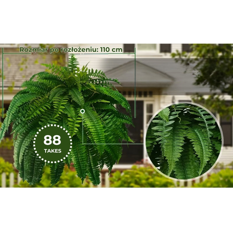 🌸【Pełny rozmiar i wysoka jakość】- Nadaje się do dekoracji: Ta duża sztuczna roślina Paproć bostońska zawiera 18 gałęzi, dzięki czemu wygląda bardzo pulchnie. Długość pojedynczej gałęzi może osiągnąć 70 cm, a rozmiar poziomej ekspansji może osiągnąć 110 cm, dzięki czemu wygląda na bardzo dużą i pełną. Doskonale nadaje się do miejsc takich jak dziedzińce, salony, biura itp.