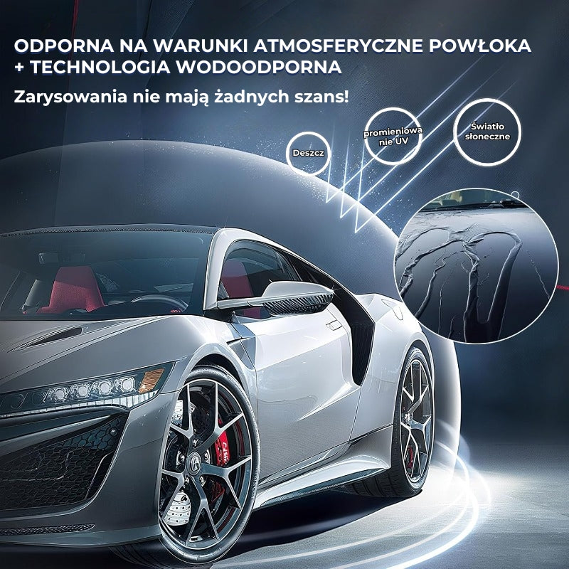 Zaawansowana warstwa ochronna jest odporna na deszcz, promieniowanie UV oraz myjnie samochodowe, zapewniając długotrwały efekt. Koniec z blaknącymi poprawkami i ciągłym ponawianiem napraw.