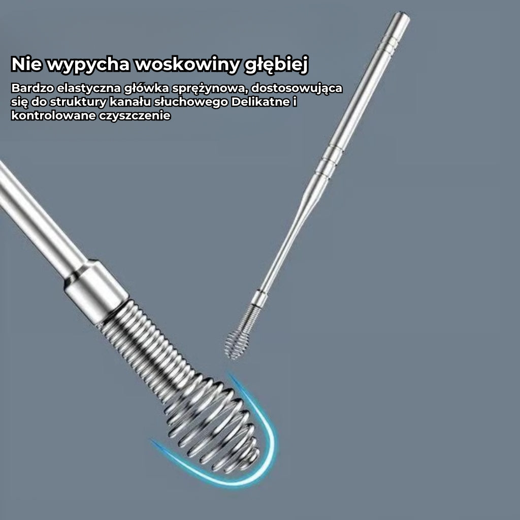 Komfort użytkowania: Dzięki elastycznej głowicy sprężynowej, która dopasowuje się do kształtu kanału słuchowego, oraz płynnej, precyzyjnej konstrukcji 360°, zestaw umożliwia delikatne i skuteczne usuwanie woskowiny bez uczucia dyskomfortu.