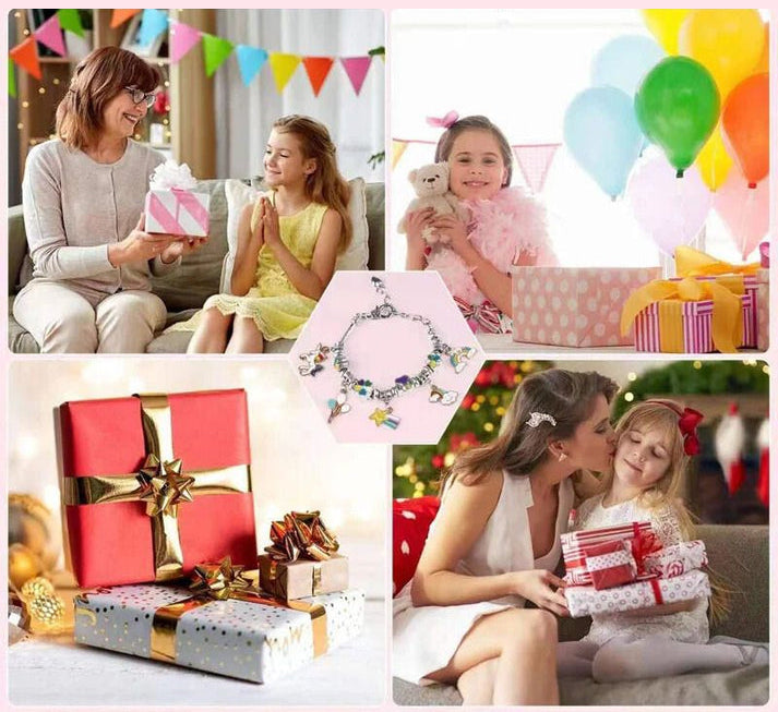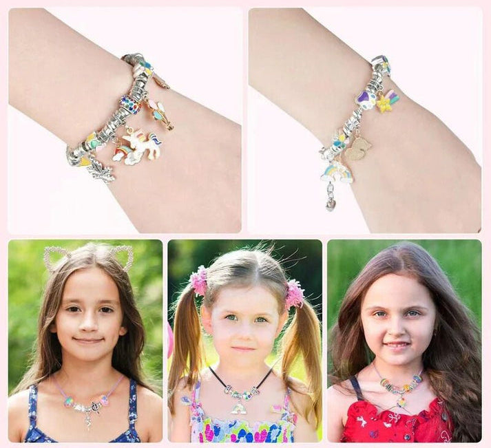 Zestaw naszyjników i bransoletek: Z uroczymi zawieszkami, takimi jak tęcze, serca, aniołki, płatki śniegu, skrzydła i korony — wszystko, co dziewczynki lubią najbardziej.